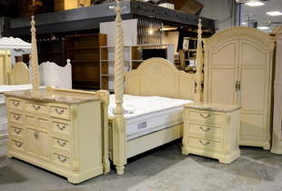 The bed features a headboard thats upholstered in polyester and. Queensized sleigh bed two oval nightstands with marble tops two dressers the long womens marble topped dresser with the 3-sided wood framed mirror with jewelry holder in it and a smaller chest or dresser also marble topped. We purchased these new in about 1995 or 1997.